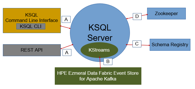 | A - KSQL client (KSQL CLI/REST API) and KSQL server | ||